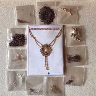 今日のビーズキットはネットショップで買ったもの。ビーズマニアさんのキット。これも購入したのは10年以上前かも。金属パーツにテグスでビーズをセッティングすればいいので作業は簡単。2時間ほどで完成しました。やっぱりこういうテイストが好物です。