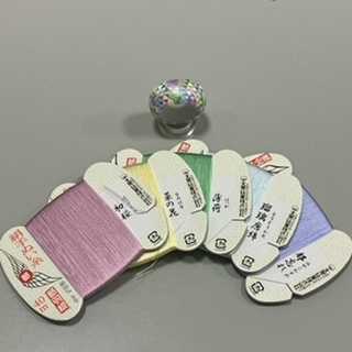 絹糸の色相環♪新しい絹糸を手にいれたので、前に入手した絹糸も合わせて整理していたら、ふと色相環が作りたくなり並べてみました。ふふふ、美しい。すべてこゆきの会オリジナル「くまちゃん印」絹糸です。会では今までに5色セットを計4回販売されています。会を主催されている寺島綾子先生が、市販の絹糸にはない色を京都の大黒絲業さんに特別オーダーしたもの。大黒絲業さんでは都羽根というブランドの絹糸を作っておられます。限定色、かつ数量限定ときたら、もうたまりません。しかも会のみなさんと、こんな色があったら‥と相談して決めた色とのことで、どれも絶妙な色合いです。問題は、ね。もったいなくて使えないことです。いつ使おうかなあ、とか何にしようかなあ、と考えている時間もワクワクして好きなんですよ。