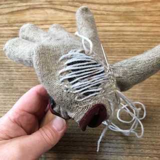 つくろう場所はニット地なのでつくろい用の糸は家にあった細めの毛糸で。