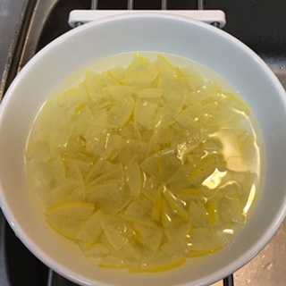 文旦の皮一個分だけでも2ミリくらいの幅に切るのが結構大変‥包丁はよく切れないとだめですね。