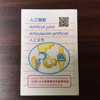外出時に私が倒れたりして、人工股関節が入っていることを説明できない状況になってもこれがあれば、安心かな、と。