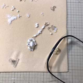 中心のパーツはかなり細かいテグス編みで、作りがいありました。