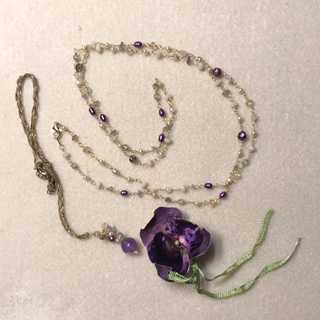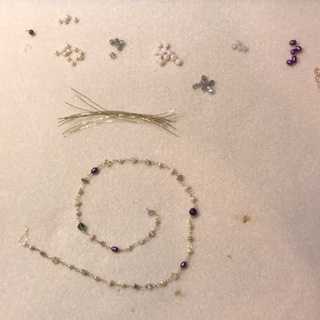細いワイヤーでメガネ止めをしながらロングネックレスを作るキット。