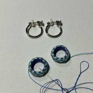 リング状のイヤリングパーツにゆびぬきを通して使おうと思って、いつもより細い幅で作っています。