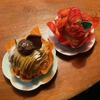 実家近くにあるケーキのお店、アントレさんのケーキを分け合って食べました。