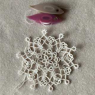 タティングレースのドイリーは同心円状に大きくしていきます。