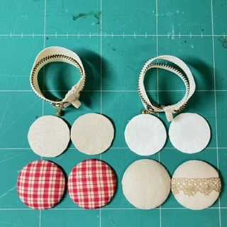 今回はひとつのポーチの表面の布に、織ってあった自作のボビンレースをあしらいました。
