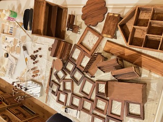 素材は100円ショップやホームセンターで買った木製品の小物。
