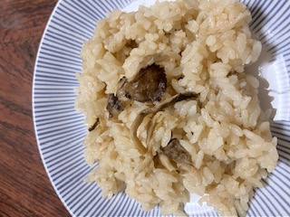 実は私は炊き込みご飯、混ぜご飯系はちょっと苦手なのですが、マイタケだけを炊きこんだご飯は美味しいと思います。