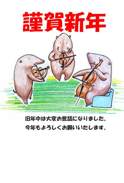 遅ればせながら今日年賀状を作っています。これまで義父に絵柄をもらっていましたが、今年は自分で描いてみました。漫画みたいになってしまいましたが、印刷してみると結構きれいにできました。これどうでしょうか?