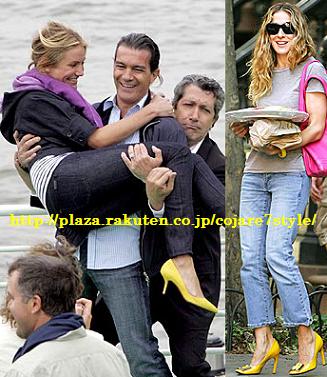 イエロー・黄色いパンプスをデニムと合わせたファッション。左:アントニオ・バンデラスに抱えられたキャメロン・ディアス@パリ。シュレック3のプロモ中のようです。シュレック&シュレック2 DVDツインパック(DVD) ◆20%OFF!右:ニューヨークで日常をパシャっと撮られたサラ・ジェシカ・パーカー。はいハイ、わかりますワカリマス。イエロー・黄色いパンプスより・・・・・キャメロンをお姫様だっこしてる、笑顔のアントニオを後ろから支えてるおじさんの変顔でしょ はい、笑った後はイエロー・黄色パンプスのお買い物をどうぞ~ 「黄色イエローファッションのセレブスタイル☆アンジェリーナ・J、ヴィクトリア・B、ジェシカ・S」「ニコール・リッチーは「黄色・イエロー」ファッションがお好き」