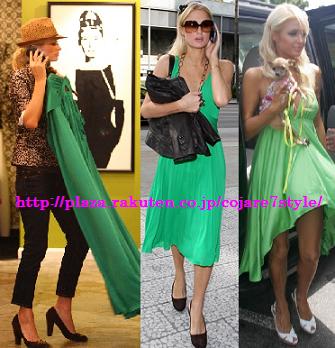 本日は「みどりの日」と言うことで、以前から気になってた「パリス・ヒルトンって緑・グリーンのワンピースが好きなのねぇ・・・」っというネタをやろうかなと思いまして。。。。。新緑の季節、アナタも緑・グリーンをファッションに取り入れてみてはいかがでしょ?