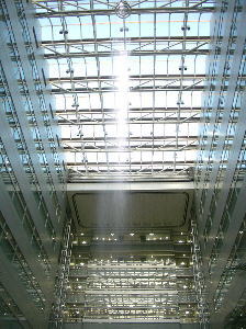 表参道でランチミーティングの後、久しぶりにゆりかもめに乗りました。今日はとってもいい天気だったので、海の景色を見ながらちょっとした行楽気分。二つのびっくりに遭遇しました。一つ目は、建設中のビルが多いこと!!ほら、よくビルの上にお~きな鉄の機械が乗っかっていて、「あれって、ビルが建った後は どうやって下ろすわけ?エレベーターに乗らないよね?」って 一瞬疑問に思う、赤と白の。あれです。(単純に解体すれば済むことなんでしょうけど・・・(笑)。)あれが、色々なビルに乗っかっていました~!つまり、建設中。そんなにビルを建てて 誰が入るんだろ?なんて、いらぬ心配をする私(笑)。二つ目は、こちらです↓。いつもより、写真を大きくしてみました。わかりますか?逆噴水!!天井から水が吹き出てるので~す。誰ですか?ただのシャワーじゃないの?って言った人は(笑)。シャワーもこれだけ高い天井からだと、びっくりするのですよ~。普段 行かないところに行くと、なにかしらびっくりと出会えるから楽しいですね(笑)。ぷぷ。