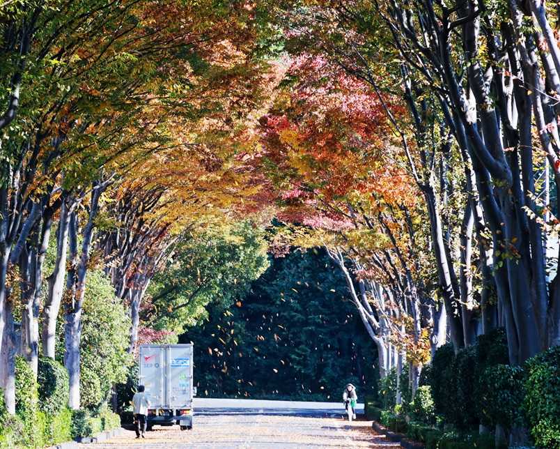 弱い秋風でもハラハラと舞い散るケヤキの葉を見ると行く秋を感じる。北流山・工業団地…