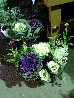 こんばんわ。今日はまさに大晦日に続く道その1でした。(^-^)あいにくというか、たまたまイブと土曜日が重なったんですが、私にはただの忙しい一日でしたね~パネットーネとはいえ、すでにケーキは食べちゃったし、明日はケンタのパーティバーレルを頼んであるし、ちょっぴりX’masっぽくはあります。でも、やっぱり仕事が最優先。よくお相撲さんたちも、「初場所が終わらないと正月が来ない。」と言いますが、おんなじ気持ちかな...とにかくお正月まで体調を整えてお仕事お仕事。(^-^)今日もお客さんたちと色んなお話しましたが、今夜は内容カキコなしおく~ん。これはお気に入りの寄せ植えなんですが、ジュリアンのほうは、葉っぱが多すぎる気がするんだよな~(^-^;) これから足湯をやって、明日に備えまっする。それではおつかれかしこ~(^-^)/Z.B