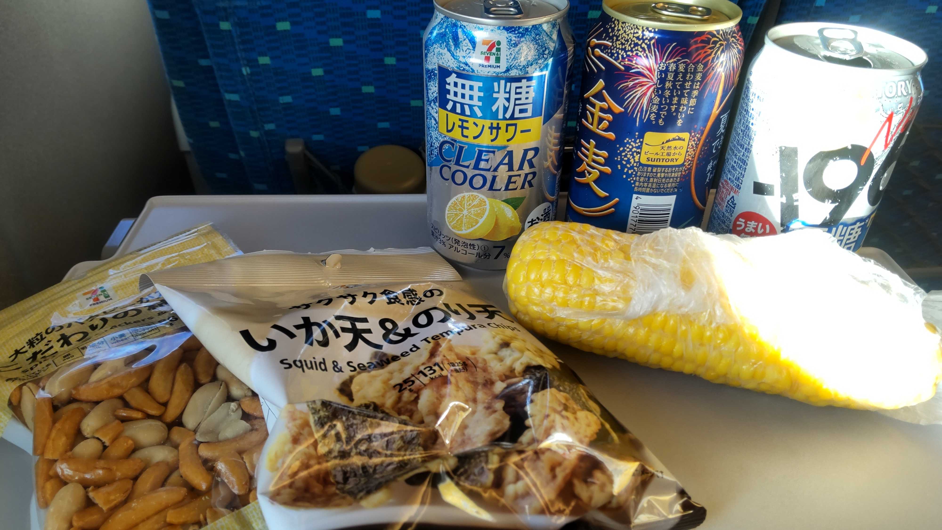 私は新幹線に乗り、車内宴会で