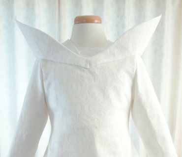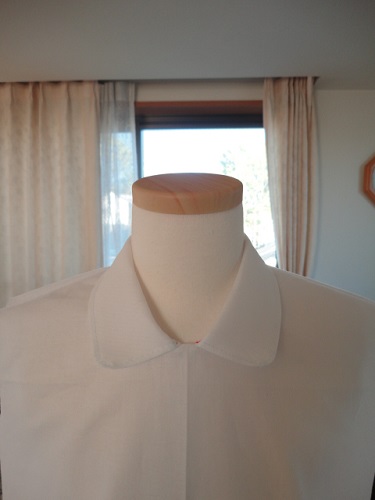 実は。Boy's C プルオーバーシャツのパターンはピーターパンのシャツだけでなく、白雪姫の王子様のような、タバード(中世の騎士が着用していた胴衣をこう呼ぶそうです)の下に着る白シャツとか、グリーティングのエリック王子のシャツにも使ってもらえたらと思っていたので、衿ぐりのラインの位置が高めなんです。ピーターパンのシャツにする時、このままでもおかしくはないと思うのですが、こだわってグリーティングのピーターパンに、より似せたい方には少し衿ぐりのラインを下げてもらったほうがいいと思います。その直し方をこのページの下のほうに書きましたので、参考にしてください。http://www1.ttcn.ne.jp/~kaori/pullover%20shirt.html写真は、この直し方で作った衿ぐりラインと衿の試作です。昨日はお天気が良くて窓から見える大きな樹が美しく、いつもバックにしているカーテンをあけてみたのですが、ピントは手前だから遠近の差がありすぎて何も写りませんでしたねー。前に書いた、mixiのアルバムの並べ替え。これはやはりmixi事務局に聞いてみるべと思い、問い合わせフォームで連絡してみました。残念ながら「日付け順」になっているものを「好きな順」にすることは出来ないそうです。だた、「アルバムにフォトを追加すると、そのアルバムが一番左上に表示される」ということを教えてくれました。そっかぁ。今まで追加をしたことなくて知らなかった。なので、特に必要もない写真をスカートのアルバムに追加してすぐ削除するという方法でオーロラのスカートとブラウスと衿のアルバムを並べることは出来ました。でも。今度もし新しくぬいぐるみ服のアルバムを作ったら、今までのぬいぐるみアルバム7つ全部に不要な写真を「追加して削除する」という作業をしないと、並べられないのね。めんどくさっ! 並べ替え機能、あったほうがいいと思いません~?