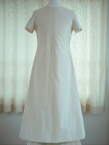 アリスの前にリロを完結させなくては。110cmのパターンを80から140までグレーディングしてもらって、それをシーチングで試作してチェックした時の140cmの試作品が見つかったので、それを利用してウエストと裾のラインを変更して作り直してみました。生地幅が足りなかったので、前中心ではぎ合わせをしています。丈はミディ丈で、後ろのダーツは入れていません。脇は1.2cmプラスして、裾は4.0cmカットしました。カット量はお好みでもう少し増やしてもいいかもしれません。作りたい丈によって脇のカットの量も違ってくるので、まずワンピースをどのくらいの長さにするか決めてから脇のラインを決めてください。http://www1.ttcn.ne.jp/~kaori/one%20piece.html脇のカット量が多いと裾線が不自然なカーブになる場合があります。その修正の仕方も説明しましたので↑こちらのページを見てくださいね。4月のブログ更新、1日だけお休みして継続中♪さぁ、明日も更新すれば私にしては大記録だぁ~~!