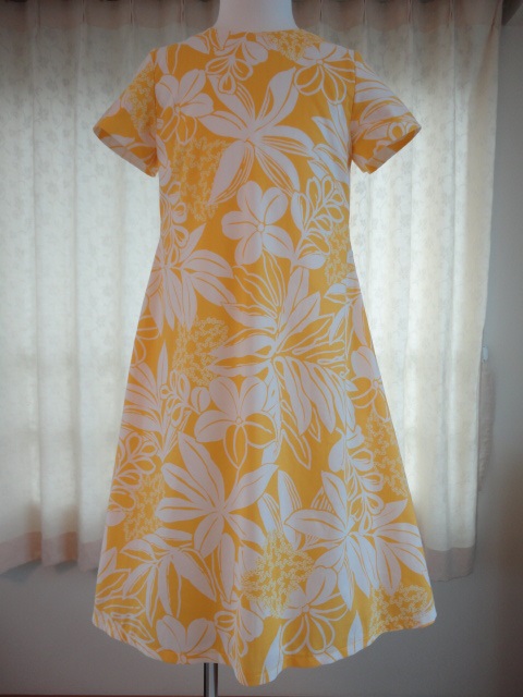本のColor3ページ(裏表紙の内側)、左上の黄色い半袖のAラインワンピース。これは型紙のワンピースの前身頃、後ろ身頃の丈をミディ丈にしたものです。写真が小さくしか載せられなかったので、裾まで写っていないですけど。本当は、ウエストラインをゆるめにして、裾幅ももっと狭くしてリロっぽくアレンジした服を作って載せたかったのですが、本に「リロに似せるためには・・」というアレンジ方法を書けないという事情がありました。実物大型紙を載せてもいない、アレンジ方法を書いてもいない作品を写真で載せるワケにはいかないので、型紙通りに作っています。サイズは110cmサイズです。http://www1.ttcn.ne.jp/~kaori/one%20piece.html↑このページに、80cmサイズはウエストのラインの変更の仕方、裾をどのくらい脇でカットすればいいかを書いてあります。今回、110cmサイズのアレンジ寸法を書きました。この寸法で直したのが上の写真のワンピースです。ミディ丈です。リロのワンピースは結構丈が長くて、足首のちょっと上くらいまで丈があり、裾幅もそんなに広くありません。(「ルアウ&ファン」調べ。)でもお子さんがパークで着るのなら、あまり丈が長いと歩きづらいでしょうし、パレード待ちでシートの上に座る時も裾幅が狭いと座りにくいと思うので、丈も短め、裾も広めのほうがいいと思って、ミディ丈でこの位のカットにしました。勿論「そっくり同じにしたい」という方はもっと「長く細く」で作ってくださいね。ちなみに「ミディ丈」ですが。本にも書きましたが、ヒザ丈とロング丈(くるぶし)の中間の長さを私の本の中ではこう呼んでいますが、正式な呼び名ではありません。正式にはヒザ丈はノーマル、ロングはフルレングス。ノーマルとフルレングスの間に2段階の丈の呼び名があって、ミディとロングがあります。つまり短い順に 「ノーマル、ミディ、ロング、フルレングス」となります。気が付いてみたら、このところほとんど毎日更新しているではないですか。どうした。私らしくない(^^; ゴーストライターでもいるのか?