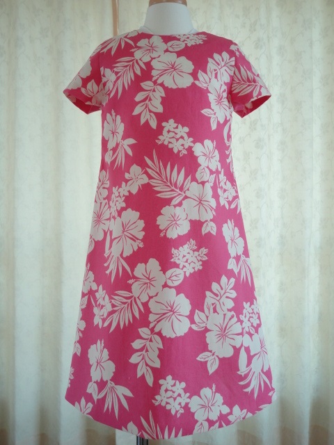 以前タオルで作ったAラインの半袖ワンピースを、木綿の花柄で作ってみました。無地の白抜きで葉っぱのみの柄の生地があればいいんですけどねぇ。この生地は色違いで赤地に白抜きもあります。柄はお花がメインなので似てないですが。サイズは80cmです。小さい子はピンクのほうが可愛いかなと思ってピンクを選択。この生地はオカダヤさんで購入したのですが、ピンクで染めれば白の柄が薄いピンクになり、地のピンクの色が少し濃くなって、ルアウのミニーのワンピの生地に少し似るかもしれないですね。(←確証はないです。) いや、いっそ赤を染めたほうが似るかな?あの生地ももう手に入らないから・・。前回のタオルで作ったワンピの写真図解は、タオルゆえにミシンの縫い目が埋没して見えにくかったし、前回よりももっと詳しくmixiで写真図解をしたかったので、このワンピも撮影しながら作りました。ランドやシーに行く時に、初めてお子さんに服を作ってあげて行きたいという方はまず赤白水玉のスカートがいいですよね。(あ、女の子のお子さんの場合ね。)次はミニーワンピよりもリロのほうがお薦めです。まぁキャラクターの好みがあるとは思いますが、難易度的には初めて作るワンピはリロのほうが簡単です。ミニーワンピはウエストで身頃とスカートをはぎ合わせなくてはならないし、袖もギャザーを寄せる必要があります。袖口や衿ぐりをバイアステープでくるむのも初めてだと難易度高めです。その点リロなら、ウエストはぎは無し、袖もギャザー無しで付けられる。袖口も衿ぐりも装飾なし。問題はあの葉っぱ柄だけなんですよね・・。一応、葉っぱ柄の作り方はこの↓ページに書いてあります。http://www1.ttcn.ne.jp/~kaori/one%20piece.html上の写真のピンクのワンピの色違いで、赤地に白抜きの花柄なら雰囲気はリロっぽくなると思うんだけど、どうかしら。30周年のパレードにリロもスティッチもいるから、この生地の服に、もしかして何かしらリアクションしてくれたらいいんだけどな♪それにしても。あのヒラキさんのタオル、あの色&柄で、木綿生地を発売してくれないものだろうか。出来ればホヌちゃん抜きで。・・だったら葉っぱももうちょっと似せて(^^)。あ、分かります? 例の「織りの傷」。前スカートの向かってやや左下。こんな目立つところにキズです。ああ。ココロにもキズがっ!