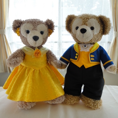 やっとペア写真が撮れました。これでダッフィー君が長期のホームステイを終えてお家に帰れます。まだ使いこなせてはいないけれど、今日は新しいミシンを使うのを練習してました。感想としては、「これに決めて良かった!!」です。決して高いミシンではありません。安いほうだと思います。私はロックミシンを持っているし、普通のミシンは直線とジグザグとボタンホールがあれば充分、と思っているので、むしろ機能が多すぎるのは嫌い、というか複雑なのは使いこなせないからイヤ!という人です。 前のミシンもシンガーだったのですが、今回も同じ。メーカーにこだわりがあったワケではないんですが、決め手は縫い目の選択が5mmまであることでした。そのお店の店員さんによれば、他のメーカーは4mmまでで、5mmがあるのはシンガーだけだと。私はギャザー寄せミシンをかけることも多いし、コンシールファスナーを付けることも多い。コンシールを付ける時の粗ミシンの縫い目は大きいほうがあとからほどきやすい。他にも良かった点は、イマドキのミシンはこういうもののほうが多いのかもしれないけれど、押さえ金の一部が透明プラスチックになっていて、ミシンの針が落ちる部分の手前が、透明だからよく見えるということ。そして、厚モノが得意!馬力がある!ちょうど次男のGパンの丈を詰めたいと思っていたのでやってみました。裾上げがガンガン縫えました。裾上げって、縫い代を折り返しただけなら布2枚ですよね。それならまず問題ないけれど、Gパンの脇って袋縫いになっているから、その部分だけでもデニムが4枚重なっていることになるんですよね。それをさらに裾あげで折り返すとデニムの8枚重ね!古いミシンじゃ到底無理!な厚みです。これが縫えてしまうと思わなかった!20年の間にミシンって進化したのね~~!ミシ子!不動のセンター危うし! 次世代エース登場! (だからAKBに例えるなって。)というワケで新しいミシンで、ビーストのジャケットのバイアステープを縫うことが出来ました♪ベル&ビーストも完成したし、簡単ミキミニも出来たし。5月の制作目標はあとはアリスだけ!