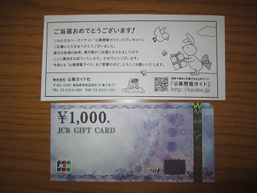 JCBギフトカード 1,000円分当選♪Thank you for 懸賞公募ガイド 10万円分くらい当たったらパーソナルフリーザー買おっかな~