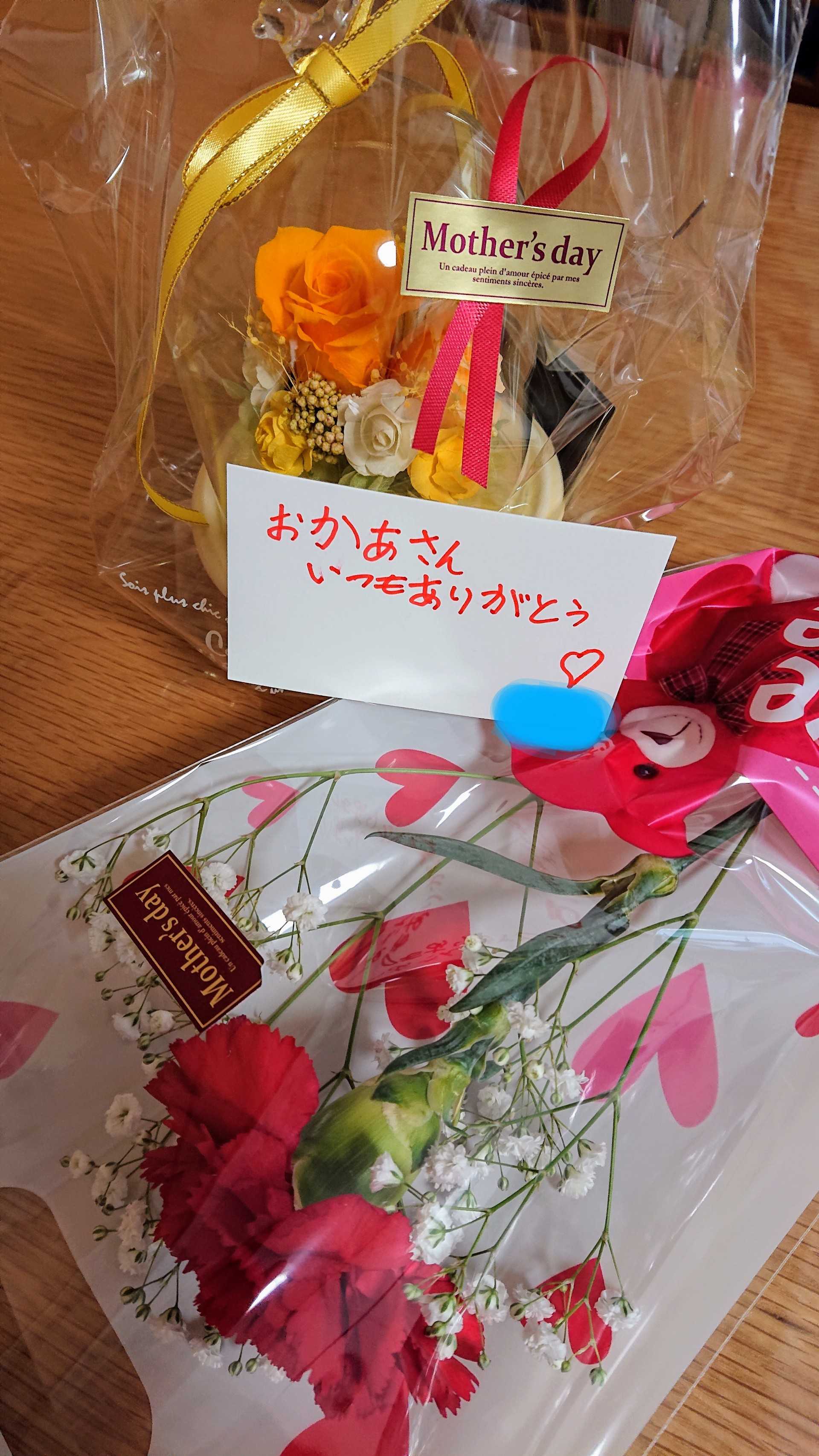 ダンナ様&子供達から プレゼント頂きました☺️ カードは坊っちゃんが書いてくれました💓 ハートマークが嬉しいねぇ😍