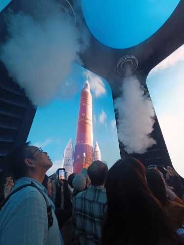 9:18 アメリカ館見学40分 ロケット展示はNASAのものでした。スペースX社のが見たかった…でもアメリカ館のスタッフはみんなフレンドリー