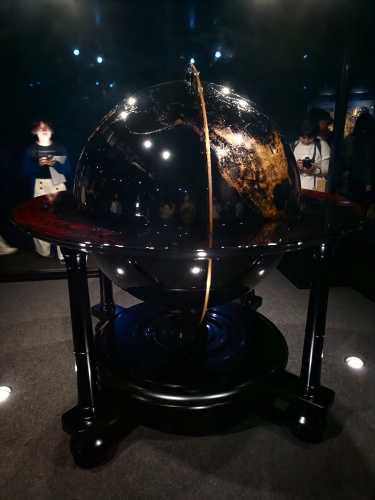 能登半島地震でも壊れなかった漆塗りの地球儀です。イランが出展辞退した場所で展示される事になったそうです。地球上で夜でも灯りが煌々と点いている場所を蒔絵や沈金で表現しています。色々と考えさせられます。
