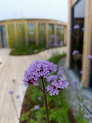 屋外テラスの植栽も素敵でした。洒落た草花が奥まで楽しめました。これは三尺バーベナです。