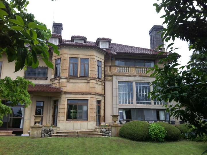 庭から見た屋敷。殺人事件起こりそう…(ミステリードラマ観すぎ)