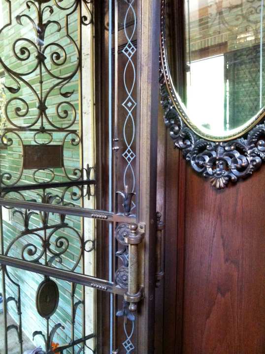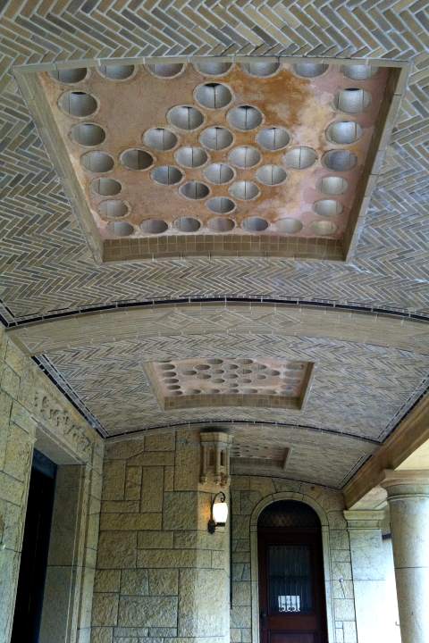 車寄せ(上)と玄関(下) 玄関は客用(左)と家族用(右)、他にも使用人用がある。
