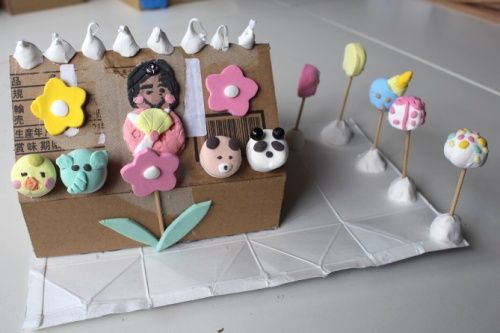 先週から「お菓子の国」をテーマに粘土を使った工作をしています。