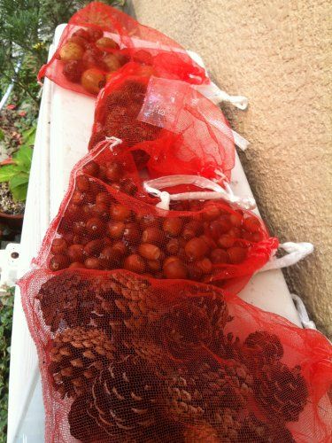 玉ねぎネットに入れて乾燥 新たに虫が入るのを防ぎます。クヌギの実は乾いたら冷凍して虫が出ないようにします。以前は煮沸消毒してましたが、カビが生えやすくなるので最近はしてません。