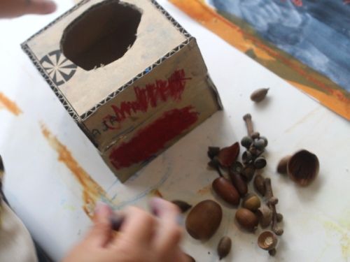 ベロベロオバケだそうです。赤いストローは自分で動かせます。木の実はオバケが食べるそうです。