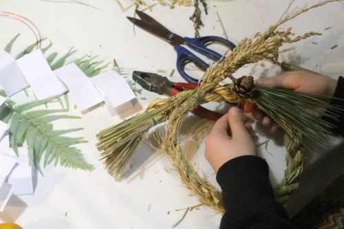 仕事納めの日の教室のは午後からずっとしめ縄づくりです。自宅用、義母用、ご近所さん用に3つ同時制作です。
