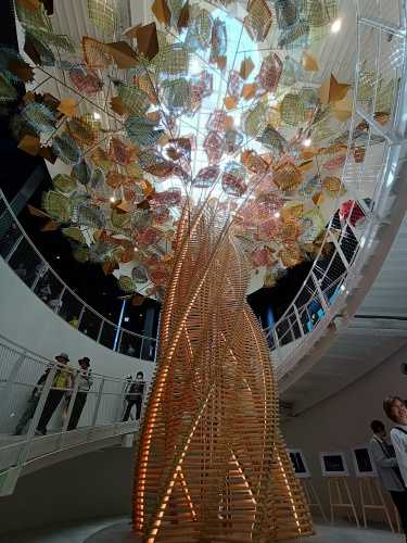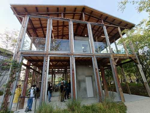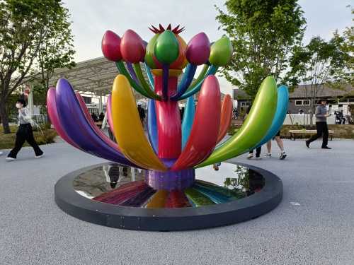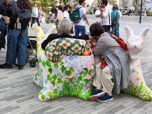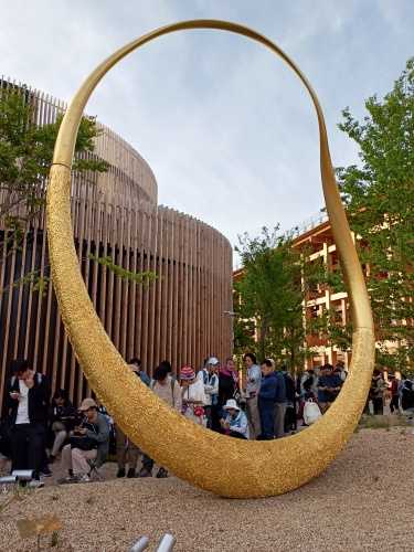 アート作品がある休憩所にやってきました。休憩所やトイレは若手の建築家による意欲的なコンセプトが起用されているものが万博会場のあちらこちらで見られます。