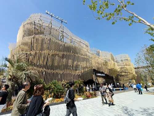 マレーシア館 隈研吾さんのデザインです。外観に竹をたくさん使っています。