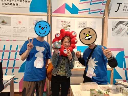 式典が終わり、隣のギャラリーEASTで開催中のWaza Meet up Osakaへ。地元パパ友の会社が出展してたので見に行きました。息子さんも会社を手伝っていました。
