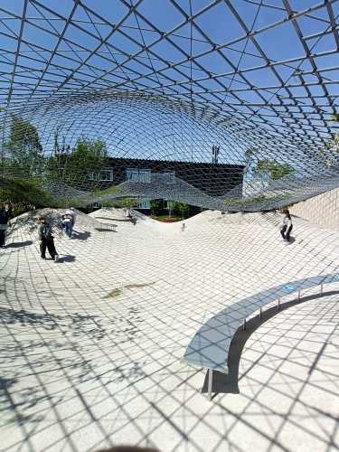 こちらは自由観覧エリアですが、鉄骨材で補強されていますが、とても解放感のある落ち着く空間になっています。休憩に使えます。