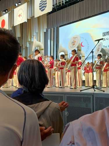 良い席は招待者の席でしたが…前半は赤十字赤新月の活動について要人の方々のスピーチです。赤新月については初めて知りました。イスラム教の国や地域では十字のかわりに月をシンボルにしてるそうです。後半の高校生の演奏よかったです!最後に「しあわせ運べるように」の合唱があり、作詞・作曲した臼井真先生が指揮されました。涙出ました。