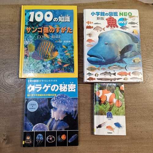 海の生き物といっても、何も資料がないとワンパターンなものばかりにんりそうなので、図書館で図鑑を借りています。