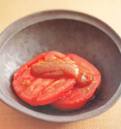 材料(2人分):トマト1個( 150 g)、酒小さじ1、みりん小さじ2、砂糖大さじ1、味噌大さじ1。