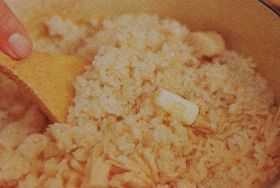 材料:米 2 合、昆布 5 ㎝角 1 枚、ホタテの水煮缶 1 缶( 135g )、うすくちしょうゆ大さじ1,酒大さじ1,塩小さじ 1/2 、水適量、バター 5 g。