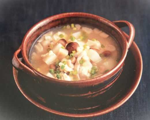 ㎝幅に刻む。調味料を煮立て、鶏肉長いも類を、豆富を大きく崩しながら入れる。