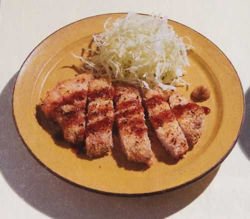 溶き卵、油入りパン粉の順にしっかりつける。グルルを強火で1分30秒予熱し、網に衣をつけた肉をのせ、強火で4分焼き、上下を返し3分焼く。器に盛り、キャベツのせん切りを添える。