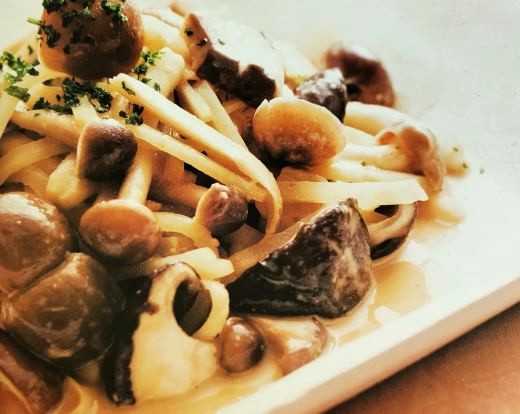 キノコ類を加えて炒め、しんなりしたら、生クリーム、焼き肉のタレ、顆粒鶏ガラスープ、コショウを加えて混ぜ合わせ、