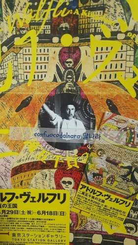 アウトサイダー・アート outsider art、アール・ブリュットの源流でもあるアドルフ・ヴェルフリ Adolf Wölfli の日本初の個展。Art Brut は2005年頃からヘンリー・ダーガー Henry Darger の作品を中心に観ていたが...アドルフ・ヴェルフリの作品を体系的に観るのは初めて。展覧会のタイトルはダーガーの作品「非現実の王国で The Story of the Vivian Girls, in What is Known as the Realms of the Unreal, of the Glandeco-Angelinnian War Storm, Caused by the Child Slave Rebellion」と引き合うような「二萬五千頁の王国」。「非現実の王国で」と比べると細密で緻密。作曲も含め画面に楽譜も備えた総合芸術的ミュージカル的総合芸術確立の趣も。実際、作曲した歌は多くの作曲家に感銘を与え演奏、レコーディングもされていた。画材をもらうために画を描き画と交換にまた鉛筆や紙を受け取る毎週の創作サイクル、描くための描き続けるための情熱にも圧倒される。ブロートクンスト Brotkunst(パンのための芸術)感がひし、と。鳥、小鳥のモチーフが多くの作品にスペースを埋め守るように登場する。目が細い鳥には前脚があったり(鳥っぽくない足)も。守り神のようにも見えるが分析によると性的なものがこめられているとのこと。色、もよう・モチーフ・パターン、音符に文字の連続性と構成空間を埋めるスタイルには影が感じられない、平常心や静けさもあるように思えるものの深い部分には薄っすら狂気と孤独が感じられる。#46 のグラデーションを纏った小鳥が愛らしかった。チンパンジーの上を格子で覆ったり画の上に文字を連ねたり。手法の組み合わせも興味深い。バランスよく鮮やかだが爽やかな色遣い、オレンジ紫緑水色のコンビネーションなども調和が取れていた。「利子計算」の画では2000年までも計算されていた。21世紀をどんなふうに夢想していたのだろうか...1章 初期のドローイング/楽譜(1904-1907)2章 揺りかごから墓場まで(1908-1912)3章 地理と代数の書(1912-1916)4章 歌と舞曲の書(1917-1922)/歌と行進のアルバム(1924-1928)5章 葬送行進曲(1928-1930)6章 ブロートクンスト ― 日々の糧のための作品(1916-1930)to be continued...!?buzz KOREAClick...にほんブログ村 韓国映画にほんブログ村 映画にほんブログ村 映画評論・レビューにほんブログ村 韓国情報にほんブログ村 K-POPにほんブログ村Copyright 2003-2025 Dalnara, confuoco. All rights reserved.本ブログ、サイトの全部或いは一部を引用、言及する際は著作権法に基づき出典(ブログ名とURL)を明記してください。無断で本ブログ、サイトの全部あるいは一部、表現や情報、意見、解釈、考察、解説ロジックや発想(アイデア)・視点(着眼点)、写真・画像等もコピー・利用・流用・盗用することは禁止します。剽窃厳禁。悪質なキュレーション Curation 型剽窃、つまみ食い剽窃もお断り。複製のみならず、ベース下敷きにし、語尾や文体などを変えた剽窃、リライト、切り刻んで翻案等も著作権侵害です。