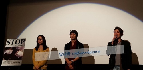 김기덕監督問題作『STOP』(2015年)東京上映最終日にすべり込む。中江翼、堀夏子武田裕光、田代大悟藤野大輝、合アレン主演김기덕監督『STOP』(2015年)(以下、映画の核心に触れる部分もございます)震災後の表現の自由について言えば、より小さいハコである演劇、舞台空間の方が(原発の問題等に)いち早く反応し創作し発表していたことと思い合わせ...演劇的な即興性、あるいはぎりぎり映画の体をなす、演劇に片足を突っ込んでいるようなスタンスの作劇と演出、と感じた。背景(舞台)や時間の進み方などざっくばらんで...前作『殺されたミンジュ ONE ON ONE 일대일』等にも演劇的な要素、演劇のような演出が感じられたがそれとはまた相違する位相で。2010年に観ていた「HIROSHIMA-HAPCHEON:二つの都市をめぐる展覧会」(F/T10)はマレビトの会、松田正隆作だったのか、と今さらながら昨年のFestival Tokyo で上演された「福島を上演する」の創作コンセプトを読み福島はもとより、表現の自由について共通する部分もありそう。「福島を上演する」創作コンセプトに引かれている、自由にものが視えるようになるための望遠鏡について「ただ霊感を与え、目を覚まさせ、ものが視えるようにさせること、それしか彼はのぞまなかった」(G・ドゥルーズ「スピノザ」)『STOP』ももしかしたら自由にものが視えるようになる望遠鏡の一つかもしれない。人によっては顕微鏡、あるいは拡大鏡と思えるにしても。時がたてば出来事だけが残りその時の不安や恐怖などの感情はとどめられることなく風化していく。しかし、やや突出し誇張しているようにも思える作劇を通してその頃ふくらんだ感情が映画として刻まれている。いつか思い出す、たどり直すためのよすがのように。あるいは、風化しそうなその時の不安や恐れを可視化するための演劇のような装置としての作劇かもしれない。秋に井の頭公園あたりで撮影したらしい映像を震災直後(春)として出されると、ちょっと...そのあたりのはみ出し加減、慌しさはフレームの外に押し出されがちな感情を近景に引き寄せ畳み掛ける装置の一つだったのかもしれない、とも思えなくはないが...被災地との距離、時間的距離も空間的距離も引き寄せ畳み掛け感情の記憶を喚び出す荒荒しい作劇。また、視ているもの感じているものにより疎通が難しくなる主人公たちも当時の被災地との距離感を思い出させる。最後に登場した聴覚の鋭い子どもは詩的な風刺に満ち現代の日本で煙たがられ排除されてしまう感受性を象徴もしているかのよう。その子どもの設定、聴覚が1000倍鋭いという設定が김기덕らしい尖った美と哀しみを湛えていた。(写真の撮影は許可されています)主演俳優の方々は台湾で活動していた俳優、韓国で活動していた俳優、舞台俳優、と多様ではあるが福島、原発が主題なだけあり、俳優集め、キャスティングも苦労したのかも...と伺わせもした。舞台挨拶とQ&Aによれば、기덕映画を観たことがある観客なら기덕っぽい!と思ってしまうガムテープで巻くシーンは主演俳優と話し合い緊迫した状況だからこうなるだろうと相談した上で決めた演出とのこと。to be continued...!?buzz KOREAClick...にほんブログ村 韓国映画にほんブログ村 映画にほんブログ村 映画評論・レビューにほんブログ村 韓国情報にほんブログ村 K-POPにほんブログ村Copyright 2003-2025 Dalnara, confuoco. All rights reserved.本ブログ、サイトの全部或いは一部を引用、言及する際は著作権法に基づき出典(ブログ名とURL)を明記してください。無断で本ブログ、サイトの全部あるいは一部、表現や情報、意見、解釈、考察、解説ロジックや発想(アイデア)・視点(着眼点)、写真・画像等もコピー・利用・流用・盗用することは禁止します。剽窃厳禁。悪質なキュレーション Curation 型剽窃、つまみ食い剽窃もお断り。複製のみならず、ベース下敷きにし、語尾や文体などを変えた剽窃、リライト、切り刻んで翻案等も著作権侵害です。