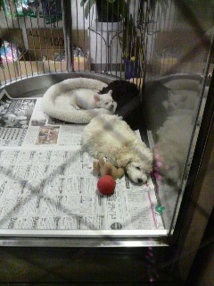 何その寝顔っ。反則だよ~。3匹で固まっちゃってさぁ~。(奥の黒い子も、固まりじゃなくてワンちゃん)もうっ・・・。仕事帰り、超癒されてしまった。ありがと。
